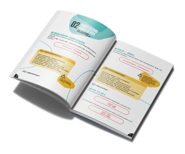 A tanult szerkezetekre épülve, minden lecke végén rövid párbeszédekkel tudod gyakorlatban is alkalmazni a tanultakat, itt újabb hasznos kifejezéseket is tanulhatsz.