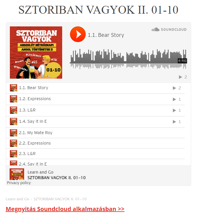 3. A www.learnandgo.hu oldalon a premium menü alatt található lejátszási oldalon kattints ide: Megnyitás Soundcloud alkalmazásban >>.